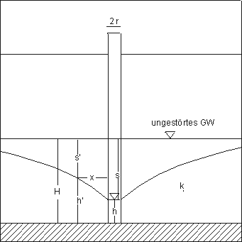Brunnenformel: Errechnung der maximalen Absenkung eines Brunnens
