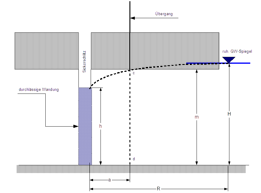 Zufluss zu Sickerschlitz nach Dupuit-Thiem